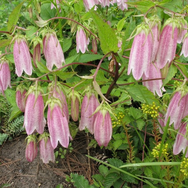 Высота растений 50-70 см, цветки крупные (длина до 6-7 см), поникающие, бокаловидные, собранные в метельчатое соцветие. Венчик темно-грязновато-розовый, весь покрыт (особенно внутри) пурпурными точками. Цветут в июне-августе. Цветение обильное и продолжительное.