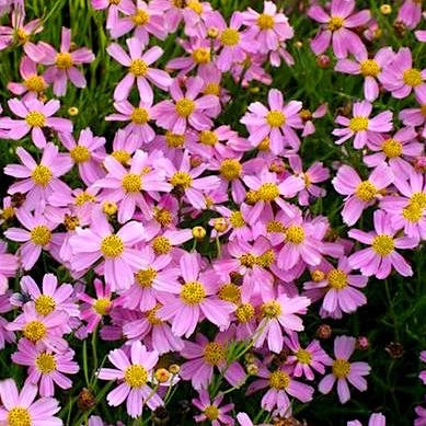 Стебли прямостоячие, ветвистые, от 45 до 90 см. Соцветия розовые с ярко-желтой серединкой. Цветет с конца июня до сентября. Для посадки кореопсиса следует выбрать открытый солнечный участок. Неприхотливое растение.