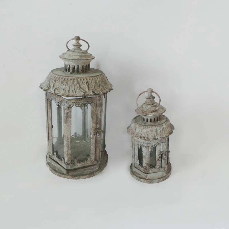 Фонари садовые под свечу (пара) белая патина FY-160197-LS-MD