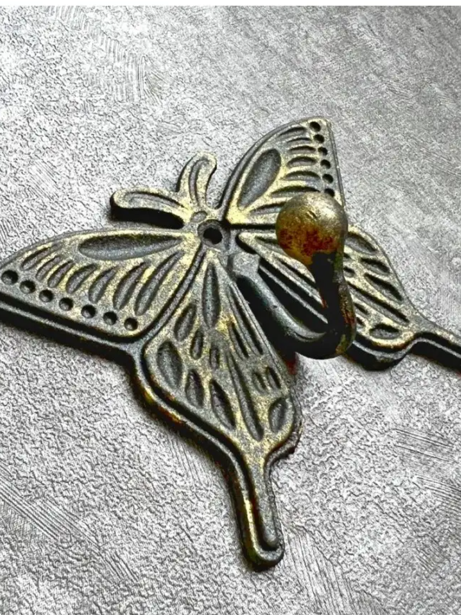 Крючок сделан из чугуна, поэтому он может выдержать достаточно большую нагрузку и не требует особого ухода. Он прослужит своему владельцу долгие годы. Этот садовый крючок украшает фигурка бабочки. Такой дизайн создает ощущение легкости и изящества, превращая чугунную вещь в стильный и функциональный аксессуар для дачи или загородного дома.