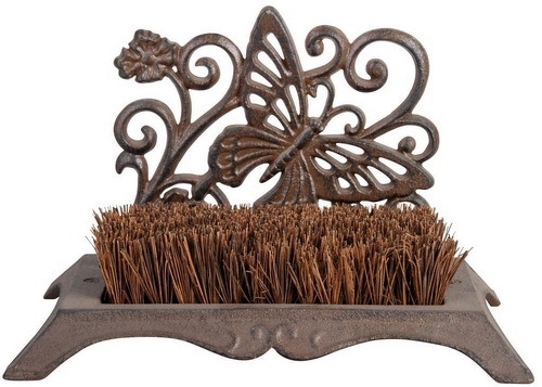 Напольная щётка, основное предназначение которой – очистка загрязнённой обуви, вполне может стать изюминкой дачного интерьера и внести в него особые нотки.