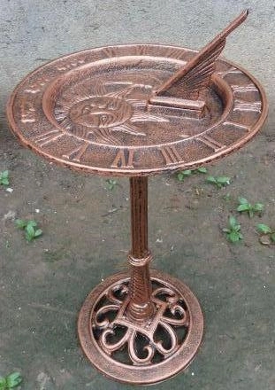 Солнечные часы в саду могут располагаться в центральной части цветочной клумбы и занимают доминирующую позицию, располагаясь, обычно, на возвышенности или пьедестале. При этом необходимо отметить, что пьедестал является неотъемлемой частью композиции и в отдельных случаях может быть представлен колонной. Задача солнечных часов саду заключается в акцентировании на себе внимания.
