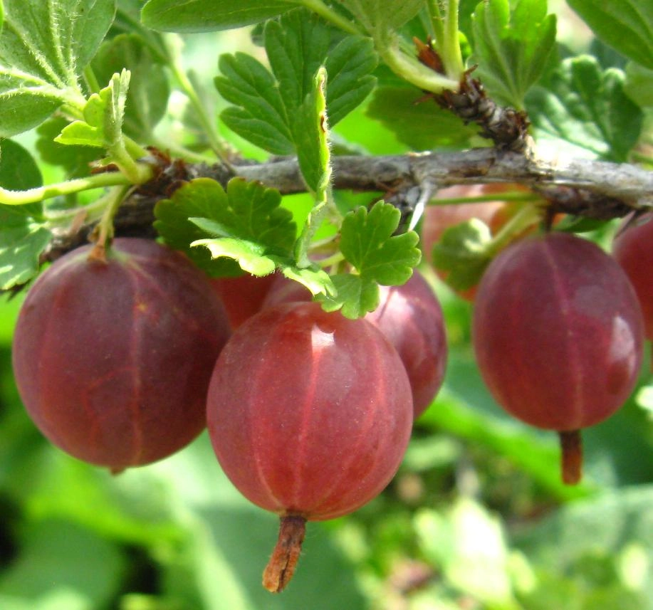 | Плоды | Ягоды от 5,5 - 9 г, округлые и округло-овальные, равномерно окрашенные, темно-вишневого цвета, с густым бархатистым и редким щетинистым опушением по всей поверхности. Жилкование практически неразличимо. Кожица тонкая, нежная, но прочная. |