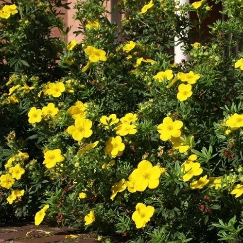 Листопадный кустарник высотой около 1-1,2 метра. Крона плотная, аккуратная, округлой формы. Листья сложные, перистые, пятилисточковые, зеленые, опушенные с нижней стороны более светлые, почти серебристые. Цветки крупные золотисто-желтые, состоят из 5 лепестков. Цветет с июня по октябрь.Светолюбива, может расти и цвести при легком затенении, Засухоустойчива, умеренно требовательна к плодородию почвы. Предпочитает хорошо дренированные, свежие и влажные, супесчаные и суглинистые почвы слабокислой и нейтральной реакции. Переносит щелочность почвы. Может расти на каменистых почвах. Зимостойкость высокая.