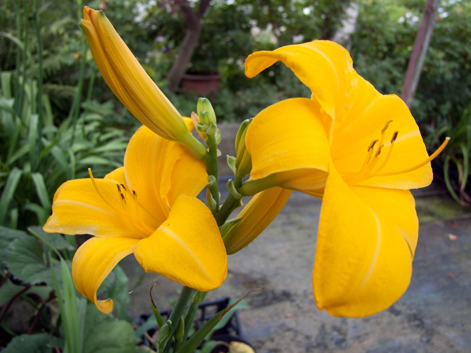Многолетнее , травянистое растение высотой до 50-60 см. Цветки насыщенно-желтой, однотонной, исключительно чистой и яркой окраски, бархатной текстуры, диаметром до 12-15 см. Края лепестков слегка гофрированные. Одновременно на цветоносе раскрываются до 3-х крупных цветков. Лист зеленый, широкий, ремневидный. Цветет в среднеранние сроки, с начала июля по август. Светолюбив, редпочитает в меру увлажненные, плодородные суглинки.Неприхотлив, зимостоек.