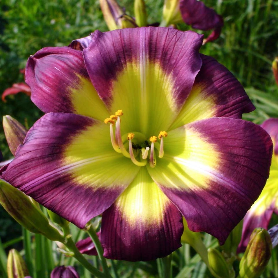 Среднерослый лилейник отличается крупным широким кустом, состоящим из длинных зеленых листьев. Прямой цветонос может приносить до 10 цветов, а его высота может достигать до 60 см.Бархатные на ощупь лепестки широкие и немного отогнуты назад, благодаря чему цветки получаются открытыми.Цветёт в июле-августе и обладает душистым ароматом. Предпочитают открытые, хорошо освещенные участки. Могут выносить небольшое затенение, но цветение при этом менее обильное. Подходит глинистая, с добавлением перегноя. 3 зона (-34,5/-39,9'C).