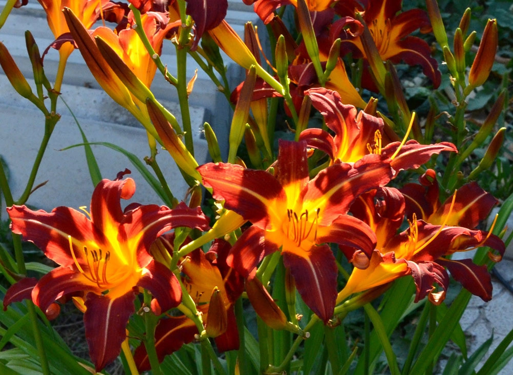 Куст разрастается плотной кочкой высотой до 60 см и диаметром до 80 см. Листья зеленые широко линейные, дугами сгибаются к земле. Цветоносы прочные высотой 70–80 см. В соцветиях до 8 цветков. Предпочитают открытые, хорошо освещенные участки. Могут выносить небольшое затенение, но цветение при этом менее обильное. Подходит почва глинистая, с добавлением перегноя. 3 зона (-34,5/-39,9'C).