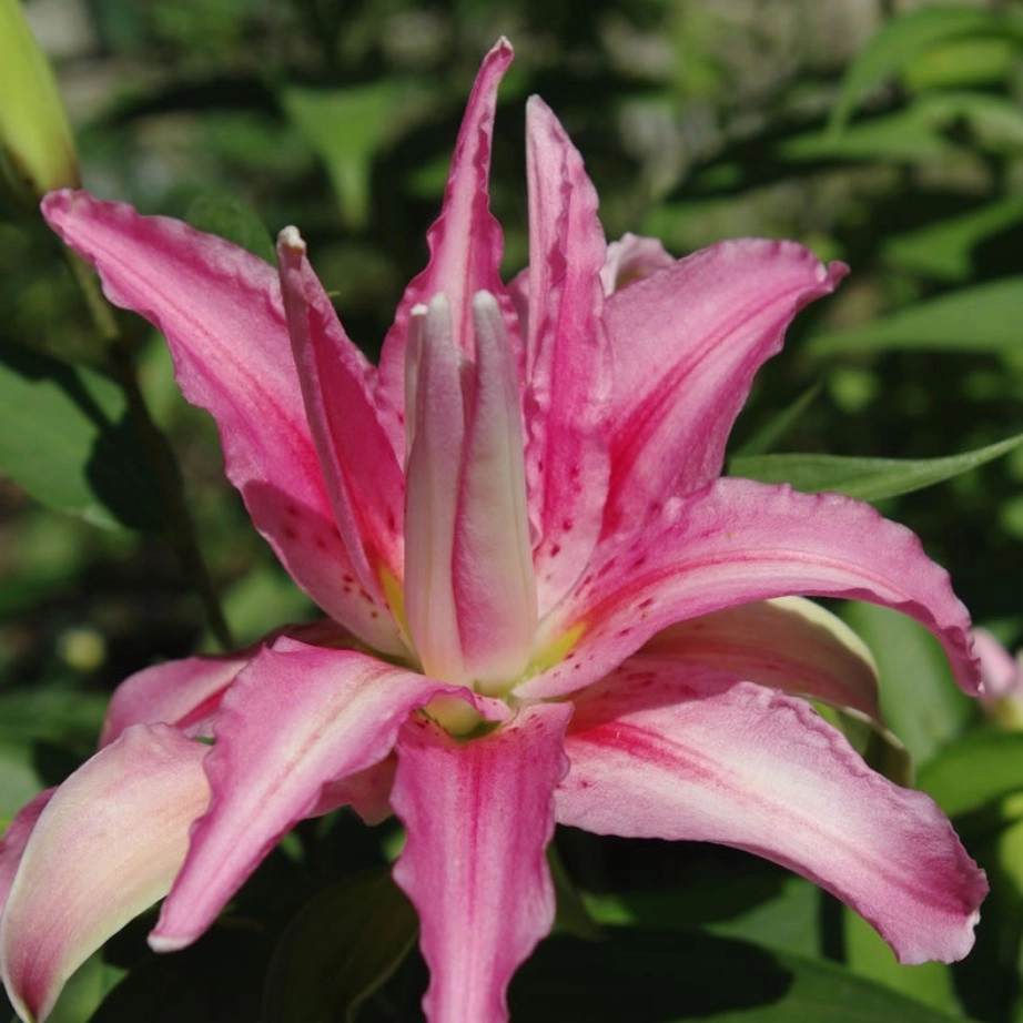 Цветки темно-розового окраса, крупные, в диаметре дистигают около 20 см, имеют удлиненную форму, растут вверх и в сторону. Высота растения достигает около 120 см. Зацветает в первой половине лета. Присутствует тонкий нежный аромат. Азиатская махровая.