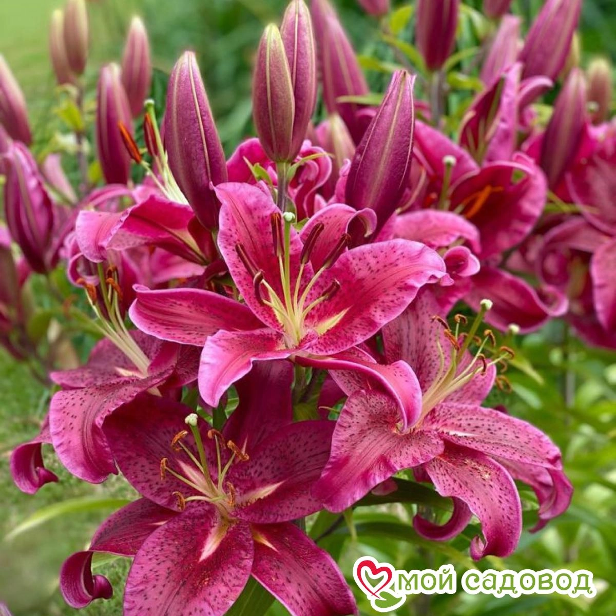Крупные бутоны до 25 см украшены ярко-розовыми лепестками с красным крапом, центр - золотистый. Стебли крепкие, растут до 90 см в высоту, густо укрыты темными блестящими листьями. Период цветения - начало августа. Расположение для посадки - открытые и затенённые места. Растение требует укрытия в первый год. Предпочитает нейтральную или слабокислую хорошо дренированную почву. Лилия Динамит устойчива к грибным заболеваниям, зимостойкая.