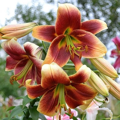 Этот представитель семейства лилейных считается луковичным травянистым многолетником, высокорослым растением, способным дорасти до 180 см (минимальная высота – 120 см). У Дебби прямостоячий стебель, зелёные листья и до 30 одномоментно распускающихся цветов. Сам цветок Дебби крупный, в диаметре достигает 18 см. У него воронкообразная форма, направленность – в стороны и насыщенная абрикосово-персиковая окраска в самом начале цветения. Впоследствии она станет винно-красной либо цвета красного дерева. В последней версии у цветка появится кайма лососёвого оттенка. Когда же лилия распустится окончательно, её кончики станут жёлтыми с золотистым оттенком. Основной окрас цветка – оранжевый. Цветок двухцветный, яркий, с красным горлом и крапом. Относится к немахровым разновидностям. Лепестки у Дебби имеют свойство закручиваться назад, тычинки её длинные, зелёные, пыльники – переход цвета от оранжевого к коричневому. У неё выразительный приятный аромат, и в срезке лилия долго остаётся свежей. У лилии отличные показатели