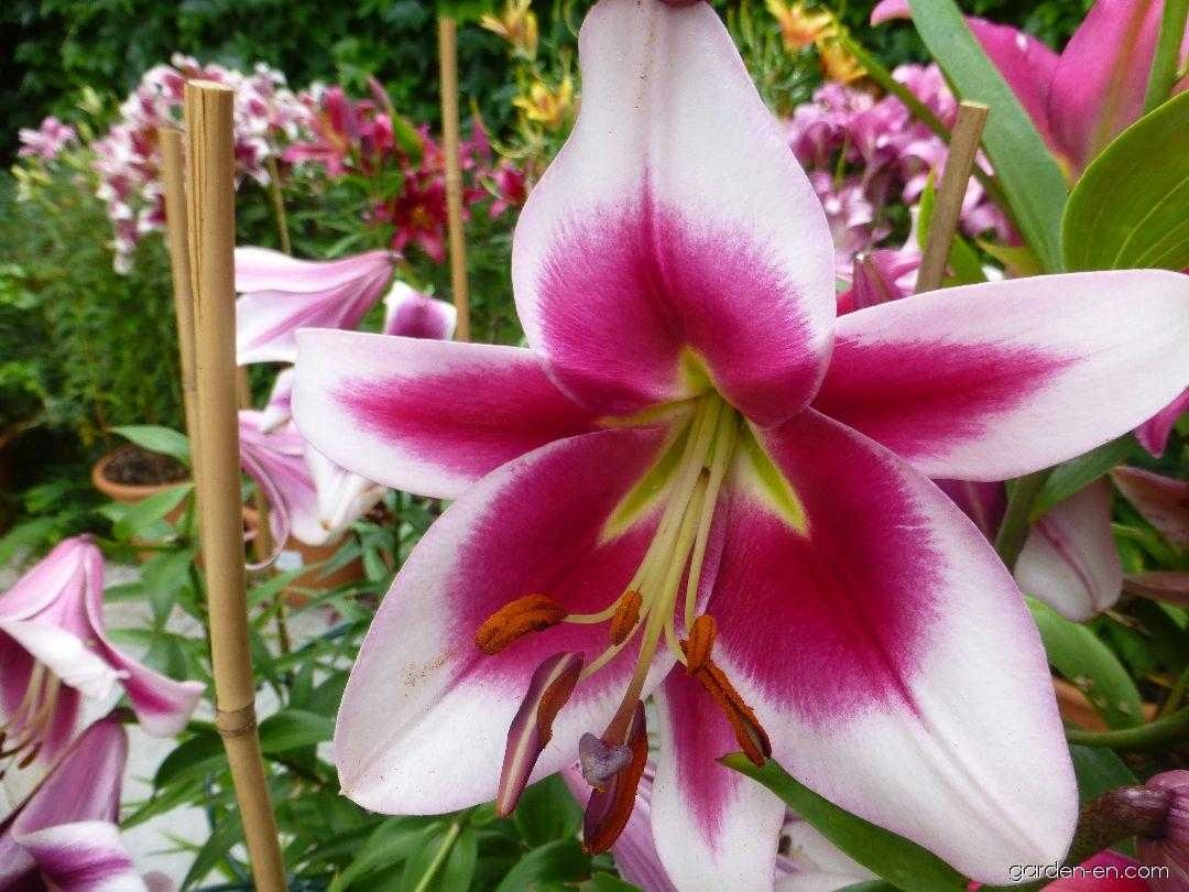 Эти лилии имеют цветки с крупной формой широкочашевого, трубчатого, звездообразного вида. В центре соцветия можно увидеть беловатый и пурпурно-красный оттенок, а горлышко имеет яркий желтоватый цвет. Этот сорт обладает уникальным ароматом, по диаметру цветку свойственно достигать 19 сантиметров, а по высоте – 130 сантиметров. Рекомендуется высаживать этот сорт в места, где наблюдается много солнечного цвета, но при этом есть немного тени. Почва должна быть рыхлой, питательной, водопроницаемой, влагоемкой, нейтральной или слабокислой. Не подойдет ни глина, ни песок. Уход заключается в регулярных умеренных поливах прополках и рыхлении почвы. Зимостойкость высокая (-34°C).