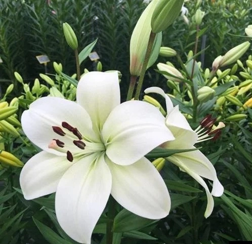 Лилия Ричмонд является ЛА-гибридом. Цветки диаметром 17 см, белые, удлиненной формы, растущие вверх и в сторону. Зацветает в конце июня-первой половине июля. Высота растения 110 см. Тонкий нежный аромат.