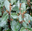 Листья плотные, темно-зеленые сверху и серебристые снизу.