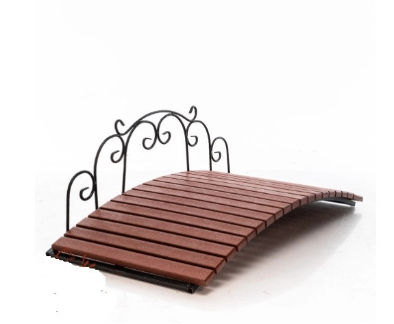 Декоративный мостик оснашен спешиальной светодиодной подстветкой, котора выглядит необычайно красиво в ночное время. Перила украшенны изящной ажурной ковакой. Разборная констуркция облечает транспортировку.