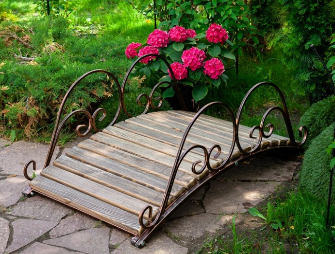 Такой мостик является украшением для сада. Он спокойно выдержит вес взрослого человека.