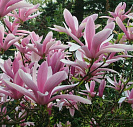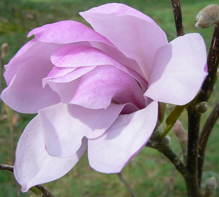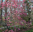 Во время и после распускания листьев, цветки снаружи тёмно-розовые, фиолетовые, внутри - светло-розового цвета с 8 - 10 узкими, слегка скрученными лепестками, длинной до 8 см. Цветёт долго, с середины апреля до начала июня.