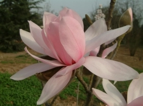 Декоративно-цветущее растение, относится к роду цветковых растений семейства Магнолиевые. Небольшое дерево высотой до 3 м и объемом до 2 м, цветущее в начале весны. Цветы нежно-розового оттенка, звездчатого типа, очень изящные, 8-10 см в диаметре. Растение цветет обильно. Предпочитает солнечные, защищенные места и свежие, влажные, проницаемые, плодородные и гумусные почвы со слабокислой реакцией. Зимой корневую систему следует защитить, укрыв ее.