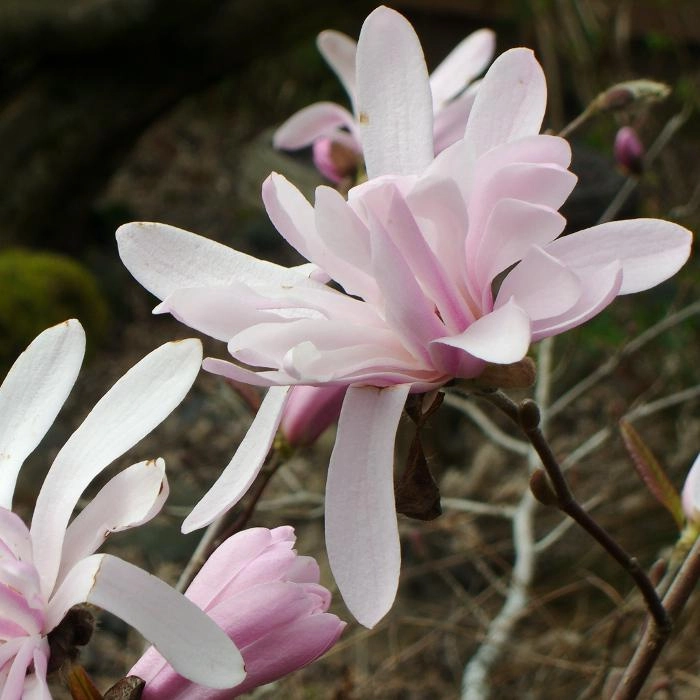 Куст раскидистый, высота 2-3м. Цветочные почки розовые, цветки звездчатые светло-розовые. Цветет рано весной до распускания листьев. Сорт Розеа прост в уходе. Розеа может расти как на солнце, так и в затенении. Культуру необходимо располагать в хорошем и благоприятном месте на участке. Нельзя допускать постоянного воздействия на магнолию прямых лучей солнца.