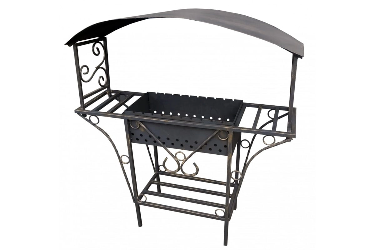 | Дополнительно | Окрашен термостойкой краской. Есть дровница и крыша. По обе стороны небольшие подставки для посуды. |