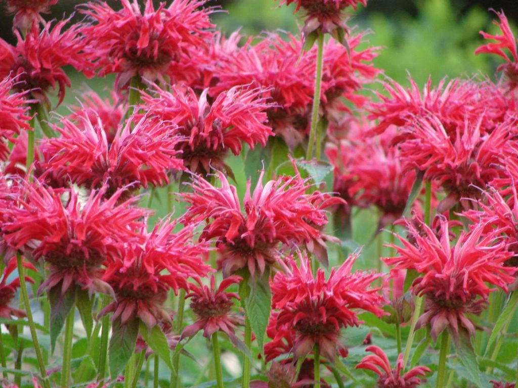 Растение многолетнее, до 80-100 см высотой, имеющее длинное горизонтальное корневище. Стебли прямостоячие, облиственные, четырехгранные, с тонкими волосками. Листья расположены супротивно, на коротких черешках с красноватыми прилистниками, 6-12 см длиной, светло-зеленые, овальные, на конце заостренные, по краю городчато-зубчатые, с редким опушением. Цветки ярко-красные, собраны в густое конечное, головчатое соцветие до 6 см в диаметре, иногда развиваются еще соцветия, расположенные над первым. Крупные, листовидные прицветники часто одной окраски с цветками. Листья, стебли и цветки имеют приятный мятно-лимонный, терпкий запах. Монарда – декоративное растение с лечебными свойствами, его можно использовать и как пряность.