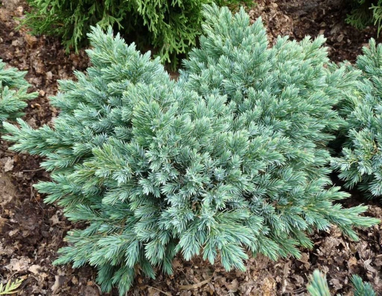 Достигает высоты 1 м при диаметре 1,5-2 м. Прирост 3см в высоту, 10см в ширину. Крона широкая, распростертая, побеги полегают. Хвоя серебристо-синяя, игловидная. Молодые весенние приросты имеют золотисто-желтую окраску. Место для посадки лучше выбрать солнечное, так как, находясь в тени, можжевельник теряет свою уникальную окраску. К почве не прихотлив, хотя лучше выбрать влажную, умеренно плодородную. Зона морозостойкости (зимостойкость). 4 (до -35С).