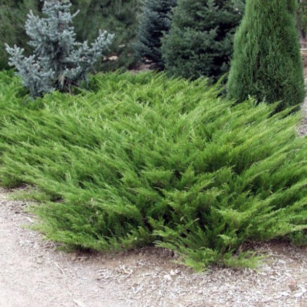 Хвоя светло-зеленая, мелкая чешуйчатая, образующая мягкие валики. В высоту достигает 0,5м, в диаметре – 2-4м. Прирост- 20см в ширину. Растет медленно. Место посадки-солнце, полутень. Почва- умеренно сухая, легкая, дренированная. Плоды – голубые шишкоягоды, которые хорошо видны на фоне яркой зелени листвы и очень декоративны. Зона морозостойкости (USDA) 4 (от -34° до -29°).