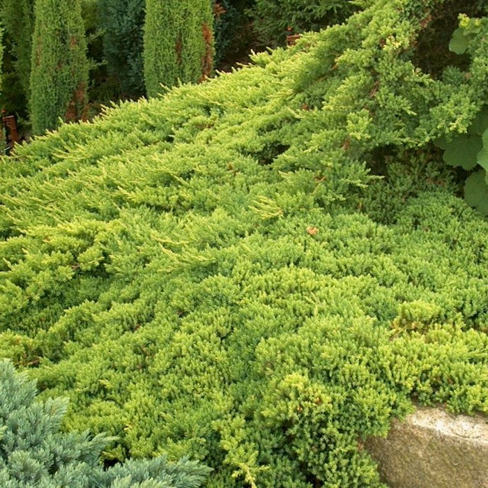 Образует густой ковёр. Ценится за красивую форму кроны и окраску хвои. Хорошо растет в условиях города.