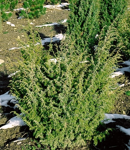 Красивый можжевельник с мягкой, зеленой листвой. В высоту не более 1 метра, в ширину 1,2 метра. Растёт очень медленно, к 10-ти годам высота 50-100 см, ширина 80-120 см. Побеги растут вертикально, но кончики свешиваются, что и создает своеобразный эффект фонтана или салюта. Годовой прирост в высоту 10 — 15 см, в ширину 5 см. Хвоя: игольчатая, сизовато-зеленая. Почва дренированная. Место солнечное или полутенистое. Хвойное растение относится к климатической зоне 4 и хорошо переносит морозы до – 35 °С.