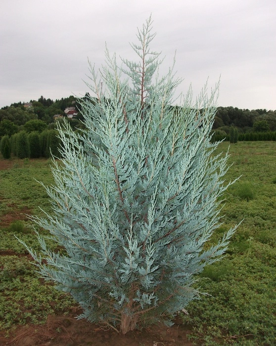 Высота 5-7 м, ширина 0,5-1 м. Годовой прирост около 15 см. Хвоя чешуйчатая, очень красивой сине-зеленой окраски. Крона узко-колоновидная, плотная, стройная. Хвоя чешуйчатая, сине-зеленой окраски. Предпочитает питательные, хорошо дренированные грунты с высокой аэрацией, не слишком плодородные, от слабокислой до нейтральной реакции. Одиночные посадки, группы, аллеи. Рекомендуется как горизонтальный элемент в растительных композициях. Зона морозостойкости (USDA) 4 (от -34° до -29°).