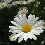 Высота 120 см. Огромные белоснежные ромашки диаметром до 17 см. Цветение июнь - август.