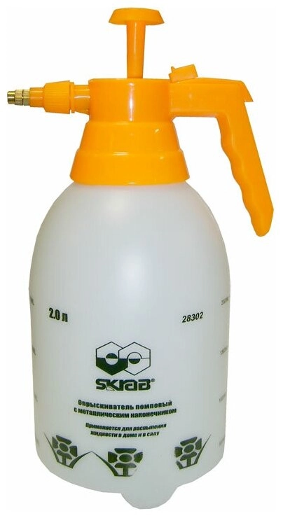 Помповый ручной опрыскиватель SKRAB 2 л 28302 используется для ухода за садовыми и комнатными растениями. Пригоден для аккуратного орошения культур и распыления жидких удобрения. С помощью форсунки легко регулировать струю, от точно направленной до распыления в виде тумана. Мерная шкала позволяет точно отмерить необходимое количество жидкости. Фиксатор пускового рычага обеспечивает комфортную непрерывную работу.