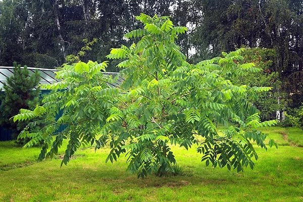 Ветви серые, гладкие. Листья очень крупные (до 1,25 м), непарноперистые. Весной- серовато-зеленые от опушения, летом ярко-зеленые, осенью — золотисто-желтые.