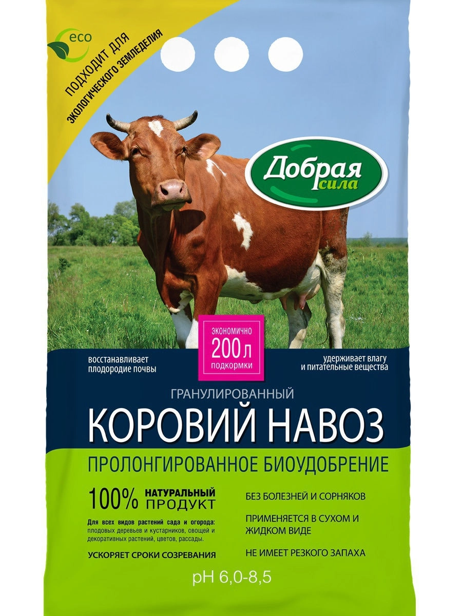 Удобрение Добрая сила Коровий навоз гранулированный 2кг