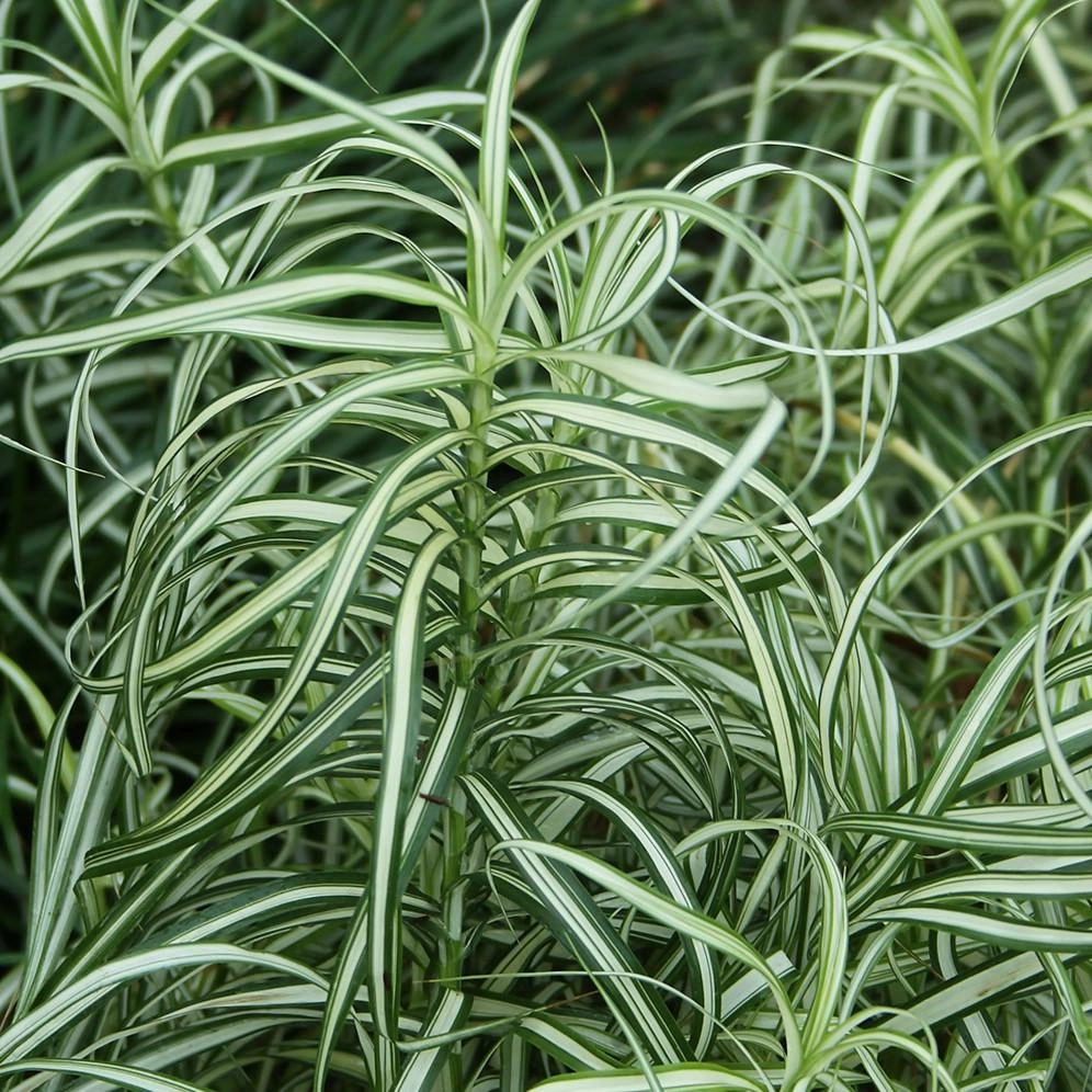 Зеленая листва с ярко-белой полосой, расположенная пучками на концах прямостоячих побегов, создает экзотический эффект папируса. Быстро нарастает образуя плотный куст.Используется для озеленения прудов и берегов ручьёв.