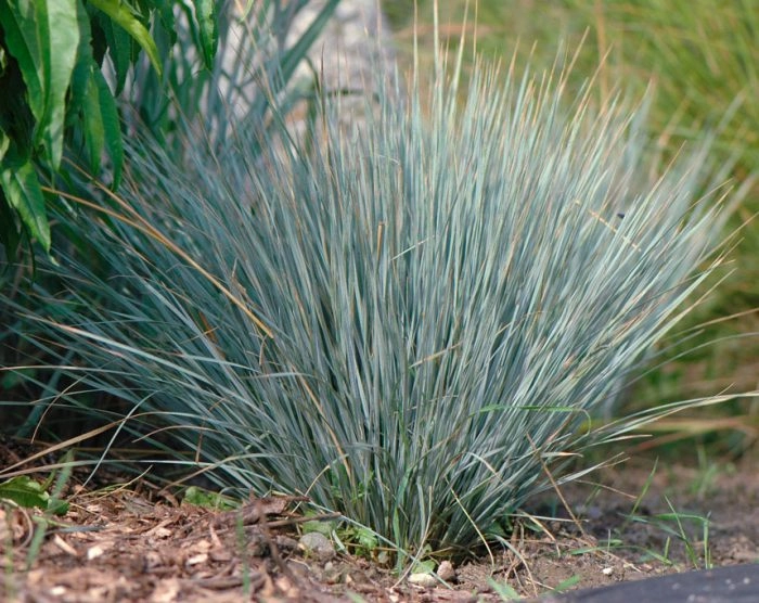 Невысокая многолетняя трава с сине-серыми листьями. Образует полукруглый пышный куст высотой 40 см. Лист узкий, линейный, стально-синего цвета. Соцветия серо-зеленые, в мягких метелках на прямом стебле, после цветения становятся светло-коричневыми. Цветет в июне - июле. Используют по одному или малыми группами, в каменистых садах, в ковровых цветниках, для окаймления цветочных клумб, в газонных травосмесях.