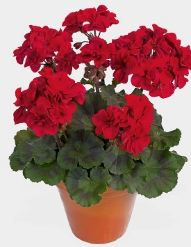 - Пеларгония зональная махровая 'Абелина' (темно-красная, темный лист)