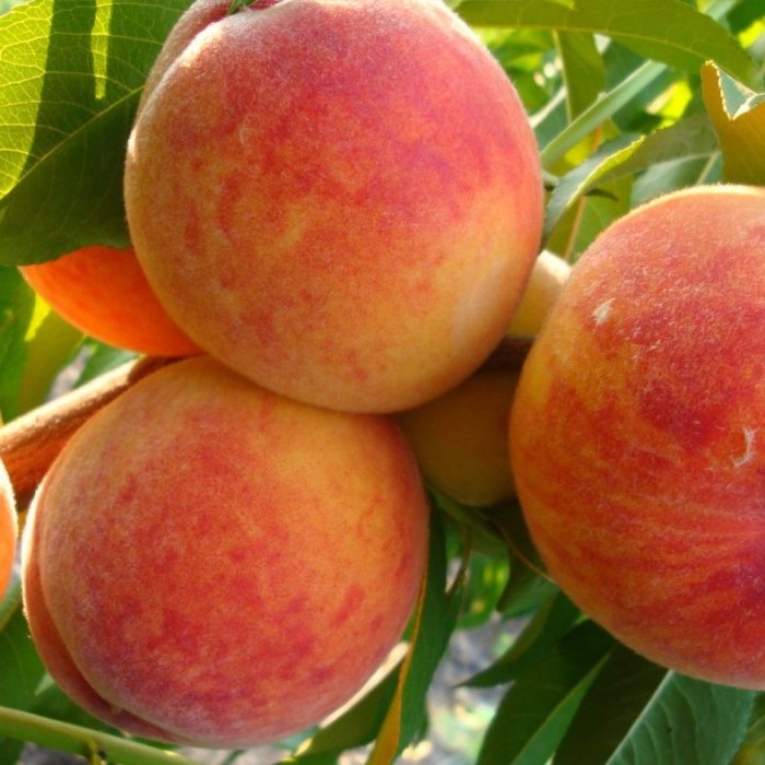 Плоды крупные, каждый массой 120-200 г, немного сплюснутые с боков, в диаметре 60 мм, покрытые бархатистой кожицей, которая у спелых плодов легко снимается. Цвет плодов – насыщенный, ярко-красный, мякоть очень сочная, хорошего оранжевого цвета. Косточка некрупная, хорошо отделяемая от мякоти.
