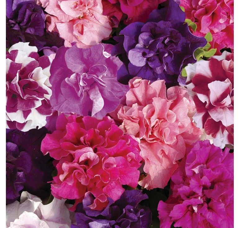 Петуния махровая 'Дуо' — гибридный, многоцветковый, очень эффектный сорт. Растение крепкое, в высоту 20-30 сантиметров. Цветение обильное и продолжительное, с июня по сентябрь. Цветки пышно-махровые, крупного размера, насыщенного цвета. Петуния любит солнечные места и плодородные почвы. Отлично подходит для озеленения и выращивания в контейнере, на балконе, в саду, в подвесном кашпо или в домашних условиях.