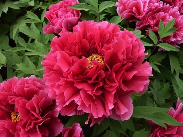 Цветки диаметром 20-25 см, полумахровые, ярко-розово-красные, блестящие. Верхняя часть лепестков в процессе цветения становится красновато-фиолетовой. Центр цветка жёлтый. Цветение: Цветение обильное, в мае. Аромат лёгкий, пряный. Для посадки пиона изначально необходимо выбрать самое подходящее место, так как пересадку эти растения переносят болезненно. Это должен быть хорошо освещенные участок, расположенный вдали от крупных деревьев, при этом защищенный от сильных ветров. Почва необходима плодородная, дренированная, нейтральная, ни в коем случае не сырая или заболоченная. .Растение холодостойкое, но в регионах с суровым климатом желательно укрытие на зиму.