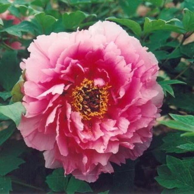 Цветок розовый, лотосовидной формы. Цветет рано. Куст сильнорослый, высото 120-150 см. Морозоустойчивый кустарник, достигающий высоты до 2 м, с крупными ярко-зелеными листьями. На одном кусте может быть от 30 до 70 цветков. Диаметр каждого от 20 до 25 см. Продолжительность цветения 12—14 дней. Растение декоративно и после цветения из-за необычной формы листьев. Пион неприхотлив, устойчив к болезням. На одном месте без пересадки может расти более 20 лет. Место посадки должно находиться вдалеке от больших деревьев, в защищённом от ветра месте, с хорошим отводом дождевой воды. Совершенно не пригодны сырые, заболоченные места. Почва должна быть водопроницаема, плодородна. Пион древовидный может считаться вполне холодостойким кустарником. Он хорошо переносит зиму в европейской части России без укрытия.