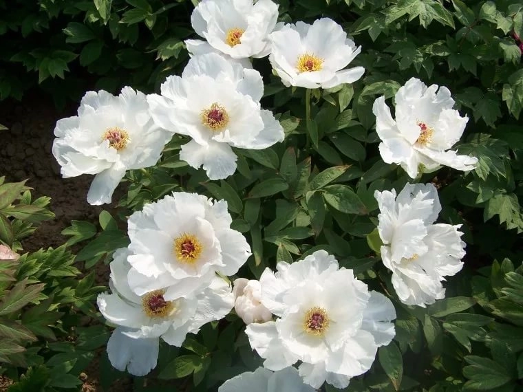 Цветки белые, при распускании имеют розовый оттенок, который позже исчезает, лотосовидной формы, 20 см в диаметре.
