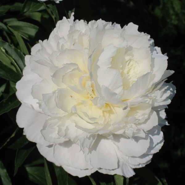 Цветение: Цветет этот пион обильно с середины июня в течение 13-15 дней. Белые цветы со светло-розовым оттенком на крайних лепестках.