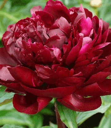 Один из самых тёмных сортов среди бордовых пионов. Махровые цветки состоят из многочисленных атласных лепестков! Их диаметр – около 20 см. Куст вырастает до 80 см.