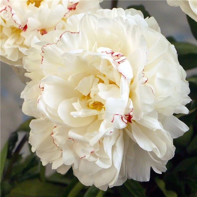 Пион молочноцветковый 'Буль де Неж' (белый с красными жилками)