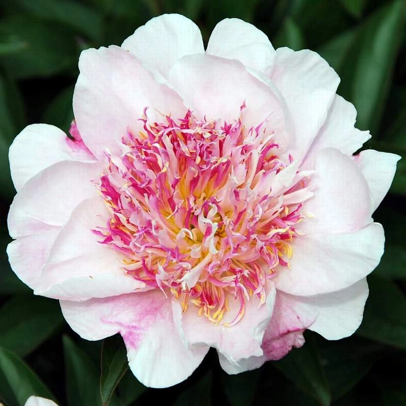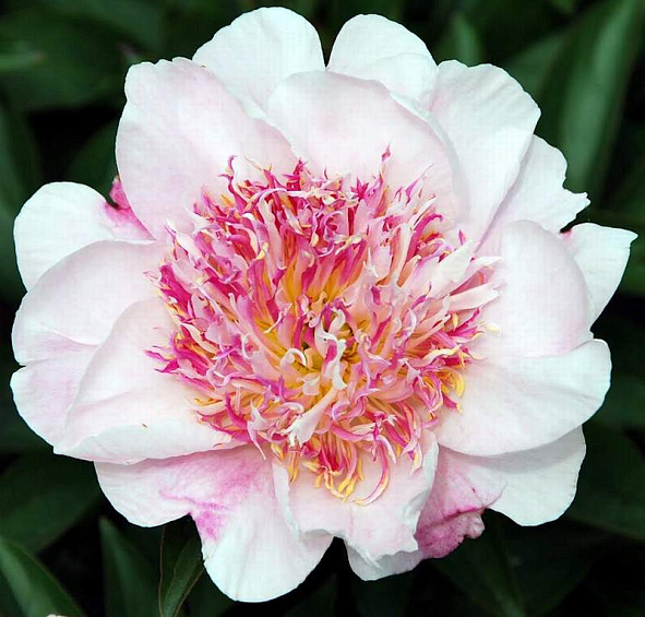 Пион молочноцветковый 'Ду Телл' (белый с розовым анемоноцветный)