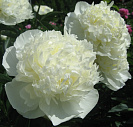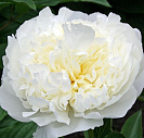 Цветение обильное в средне-поздние сроки. Ароматные махровые цветки диаметром 14 см с крупными лепестками чисто-белой окраски, внутренние лепестки кремово-желтые в основании. Один из лучших ароматных пионов.