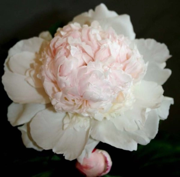 Молочноцветковый. Высота до 100 см. Соцветия бледно-розовые с кремовым оттенков по краям лепестков и более темным оттенком розового в центре бутона. Стебли сильные, не требующие опоры. Цветет пион обильно в середине сезона.
