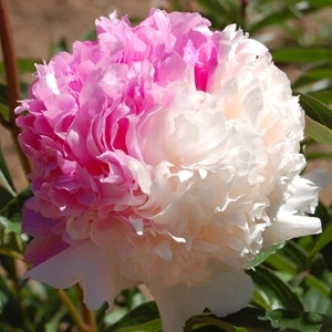 Махровый полушаровидный. Цветок розовато-кремовый, иногда белый с розовыми пятнами, с высоким центром. Стебли прямые. Необычный окрас цветка! Одновременно на кусте могут быть белые, розовые или двойные цветки, у которых одна половина розовая, а другая белая, причем, в разные годы окрашен по разному: от почти белого до розового. Этому сорту свойственно варьирование цветов. Он может процвести в один год полностью белым, в другой год полностью розовым. Период цветения: средне-ранний. Размер цветка: 15-17 см.