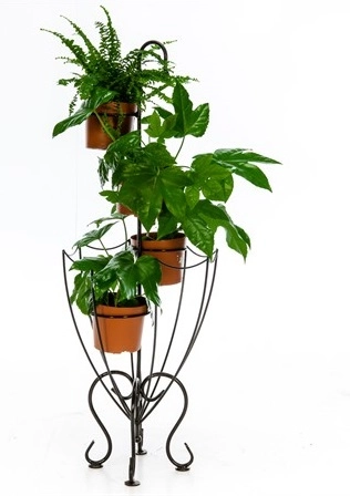 Подставка для цветов 95-053 предназначается для размещения четырех растений. Выполнена из металла, декорирована коваными элементами. Цвет металла: черный.