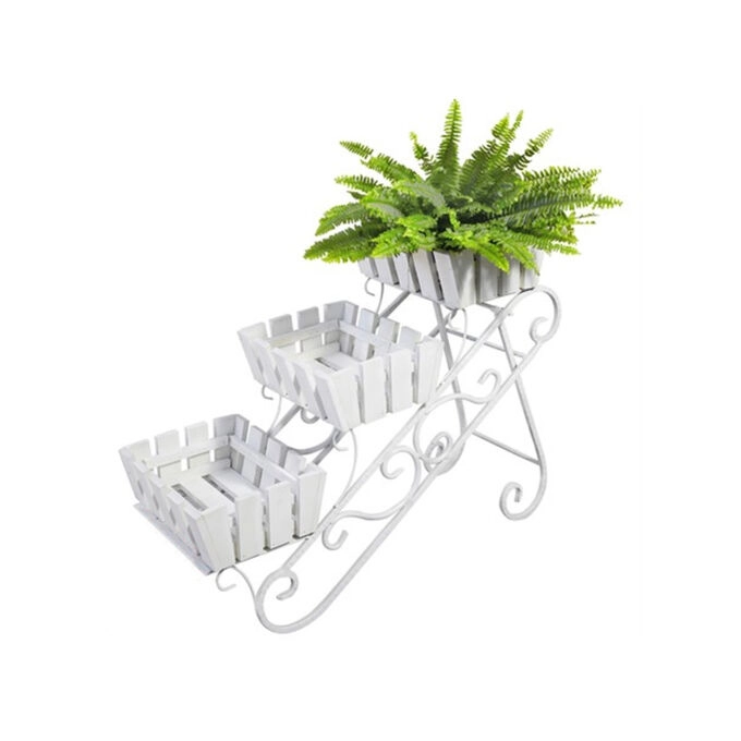 Основу конструкции садовой подставки 59-823-W составляет, кованый металлический карка и деревянные кадки для растений. Данная модель окрашенна в белый цвет.